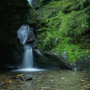 Through the centuries, the river Trevillet has carved its way through Late Devonian slate, creating a magnificent 60-foot waterfall which has punched a hole through the original kieve (basin). The water now cascades from this through the beautiful flora-laden valley.